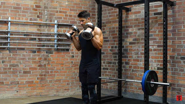 - Strecken Sie nun Ihre Hände gerade aus und heben Sie das Gewicht zu Ihrer Schulter, ohne Ihre Schultern zu bewegen.