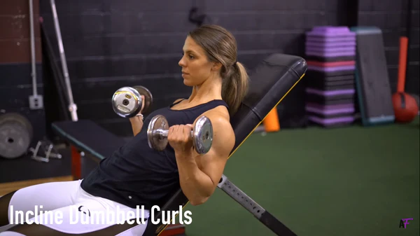 Wenn Sie Probleme haben, Ihre Form beim Curlen beizubehalten, ist ein Schrägbank-Kurzhantel-Curl die beste Option. Indem Sie sich auf eine geneigte Bank legen, können Sie Schwung eliminieren und eine passende Form erreichen.
